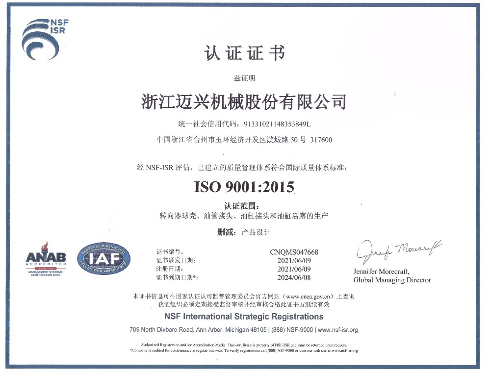 邁興秉持“提升興高度”的價(jià)值觀,不斷探索,提升自我。公司具有系統(tǒng)化生產(chǎn)制造能力,先后引進(jìn)行業(yè)先進(jìn)進(jìn)口制造、檢測(cè)、清潔設(shè)備,并不斷推進(jìn)數(shù)字化和無(wú)人化制造;公司具有系統(tǒng)化管理能力,研發(fā)投入EPR質(zhì)量管理系統(tǒng),跟蹤產(chǎn)品每一步進(jìn)程并加強(qiáng)現(xiàn)場(chǎng)品控,推進(jìn)無(wú)紙化管理。通過(guò)了ISO9001:2008, ISO/TS16949:2009,ISO/TS16949:2009管理體系認(rèn)證,ISO14001環(huán)境管理體系認(rèn)證,OHSAS18001職業(yè)健康安全管理體系認(rèn)證。同時(shí)是“高新技術(shù)企業(yè)”“省級(jí)科技型中小企業(yè)”“臺(tái)州市級(jí)企業(yè)技術(shù)中心”,“制造業(yè)高質(zhì)量發(fā)展先進(jìn)集體”“進(jìn)出口行為規(guī)范集體”等。